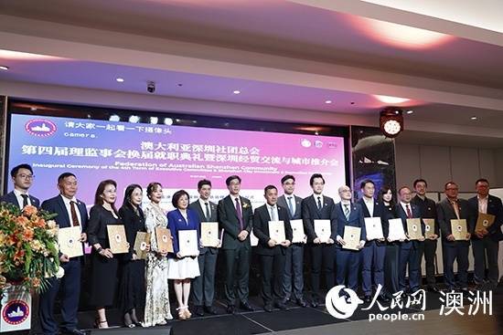 人民网悉尼10月14日电 深圳经贸交流与城市推介会暨澳大利亚深圳社团总会第四届理事会就职典礼12日晚在悉尼举行。活动由澳大利亚深圳社团总会主办,深圳市海外交流协会和深圳市驻澳大利亚经贸代表处协办,来自中澳政商界、侨界及深圳经贸代表团的四百余名嘉宾出席。